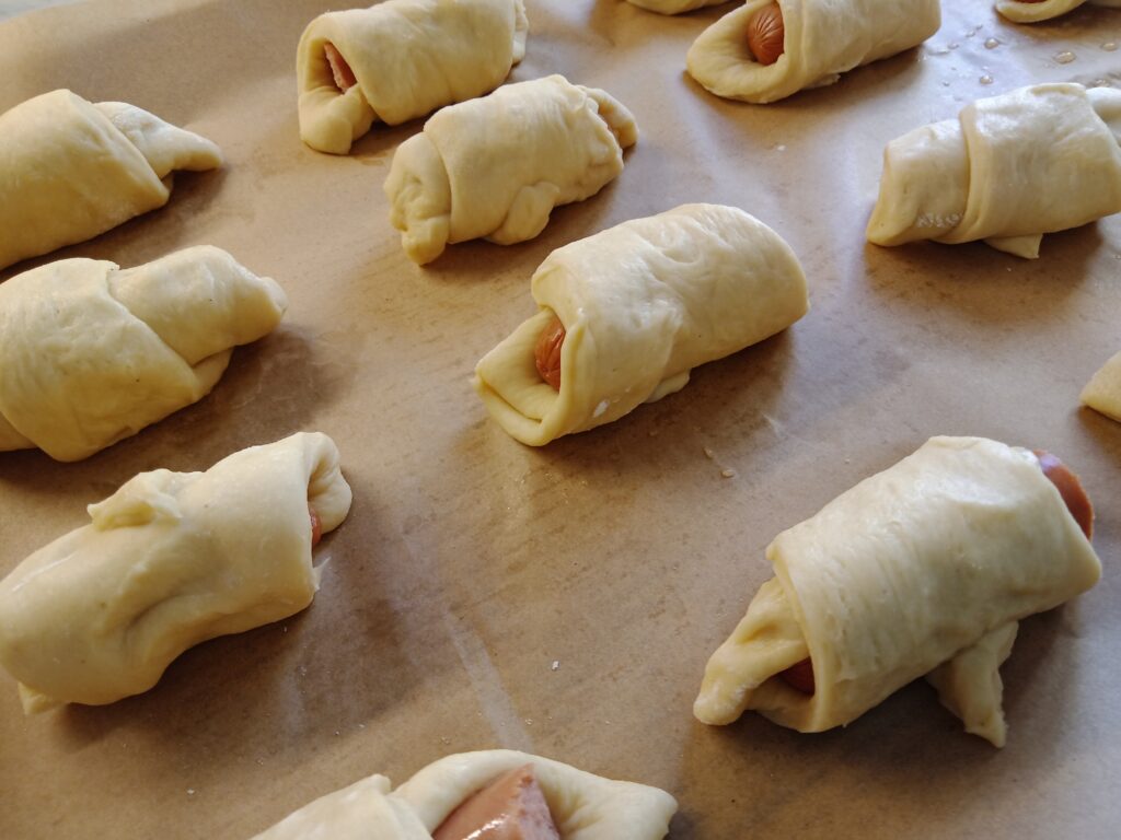 Hot dog roll-ups before the oven,
