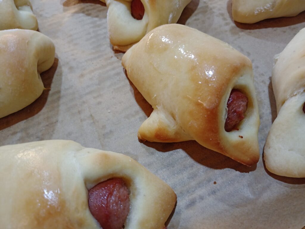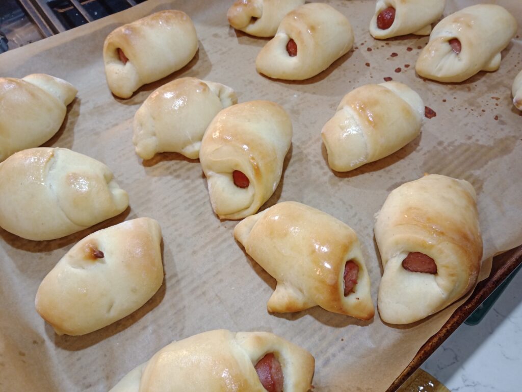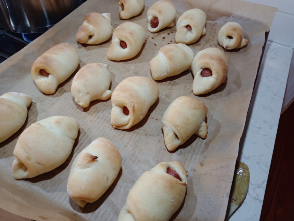 These are made from scratch crescent rolls that we made into hot dog roll-ups!